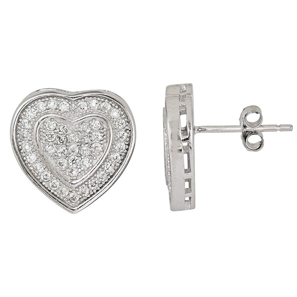 - Cubic-Zirconia: This Sterling Silver 13.3x13.3mm Micorpave Heart Stud Earrings features 86 gemstones with a total carat weight of 0.86 CTW.