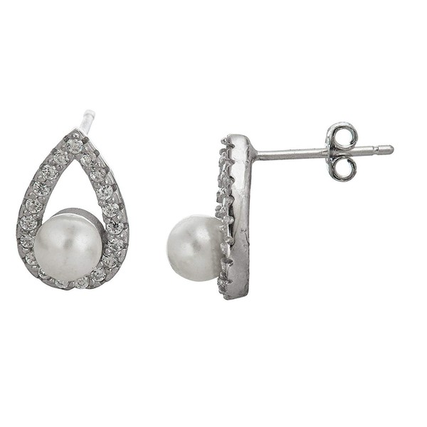 - Cubic-Zirconia: This Sterling Silver 5mm Faux Pearl Tear Drop Stud Earrings features 40 gemstones with a total carat weight of 0.46 CTW.