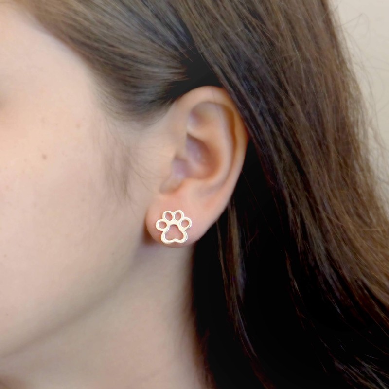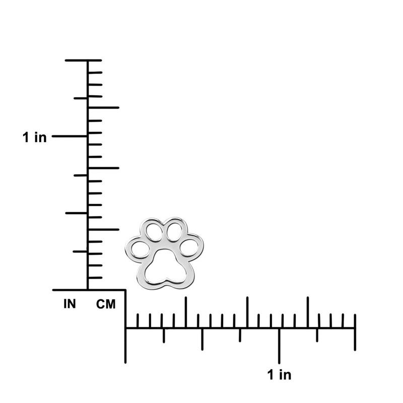 Great for the pet lover a high polished outline of a paw print. Post backing. Paw print measures 12mm (7/16 inch) tall and 13mm (1/2 inch) wide. Sterling silver.