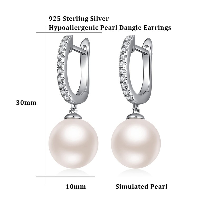 - Silver Pearl Earrings: These pearl dangle earrings feature lustrous and timeless 8mm-10mm white large pearls. The pearls dangling earrings are carefully selected for pearl round shape, smooth surface, and beautiful luster, adding an graceful touch to any outfit.