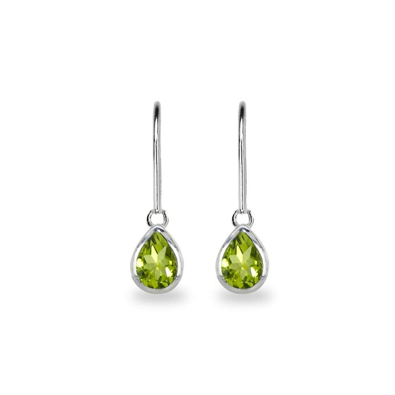 - FEATURE - The perfect accesory for any occasion, these dangling earrings are a beautiful addition to any jewelry collection. These dangle earrings showcase sparkling 7x5mm pear-cut peridot stones in a polished bezel setting.