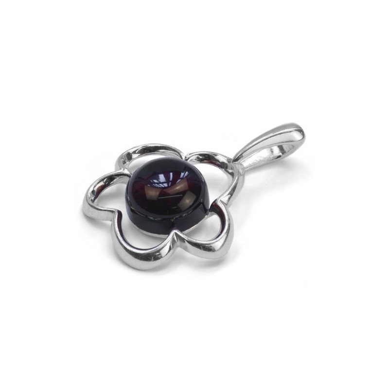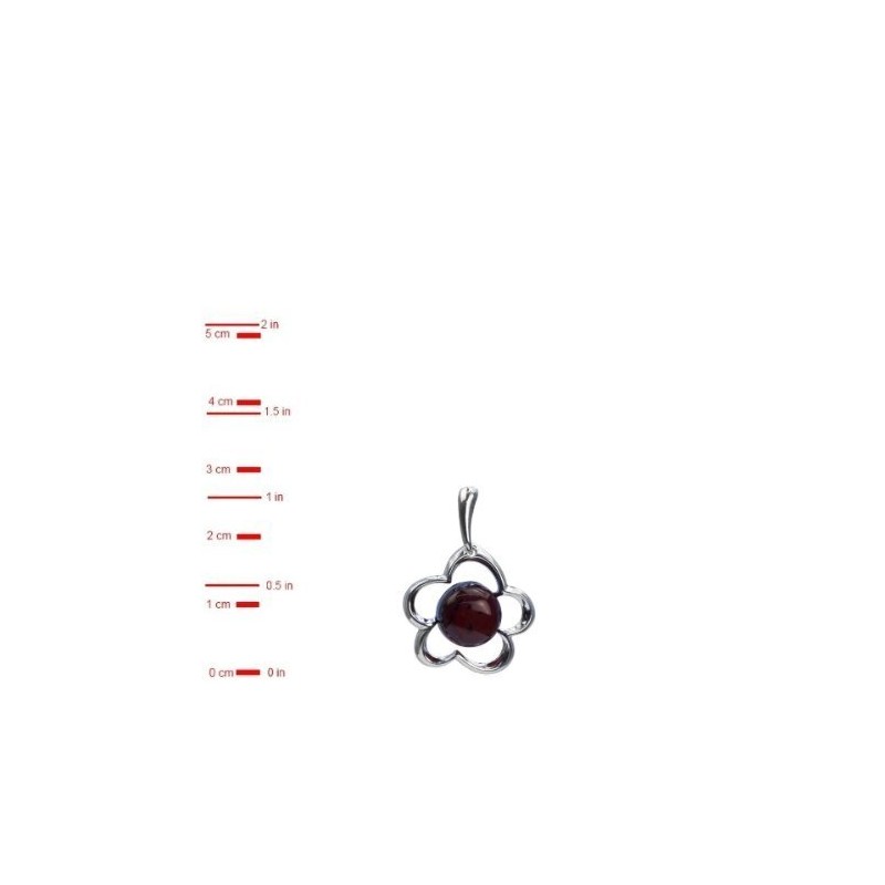 Sterling Silver Red Dark Amber Round Stone Flower Pendant