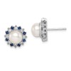 Sterling Silver Rhodium-plated FWC Pearl, Synthetic Blue Spinel & Cubic Zirconia Stud Earrings