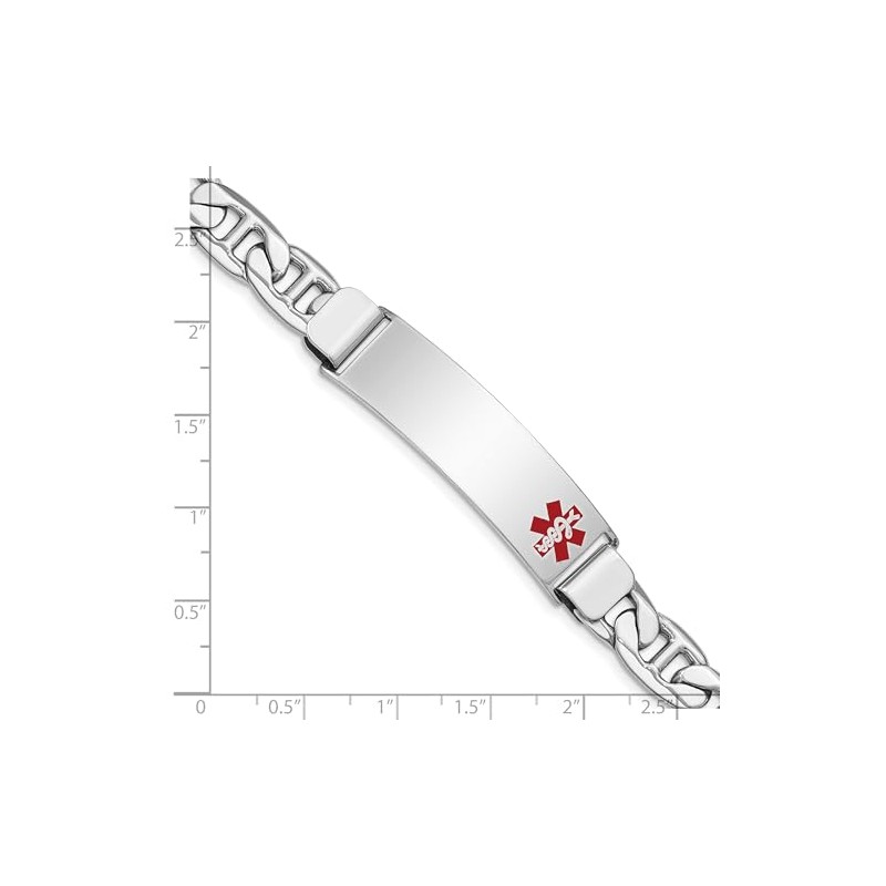 Sterling Silver Rhodium-plated Medical ID Anchor Link Bracelet
