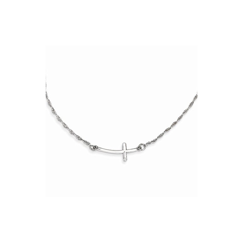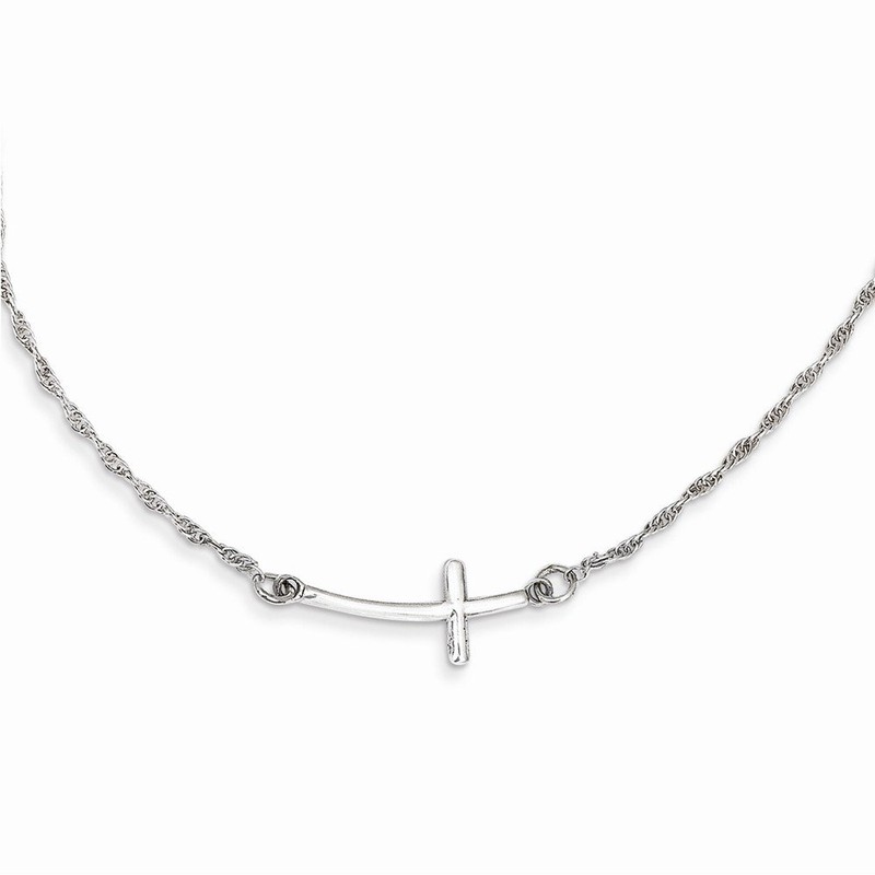 • Sterling Silver Rhodium-plated Small Sideways Curved Cross Necklace Is Made By Brilliant Jewelers With You In Mind or For That Special Someone