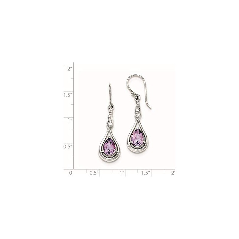 Sterling Silver Rhodium-Plated With Cz & Amethyst Dangle Earrings (Length=40) (Width=11)