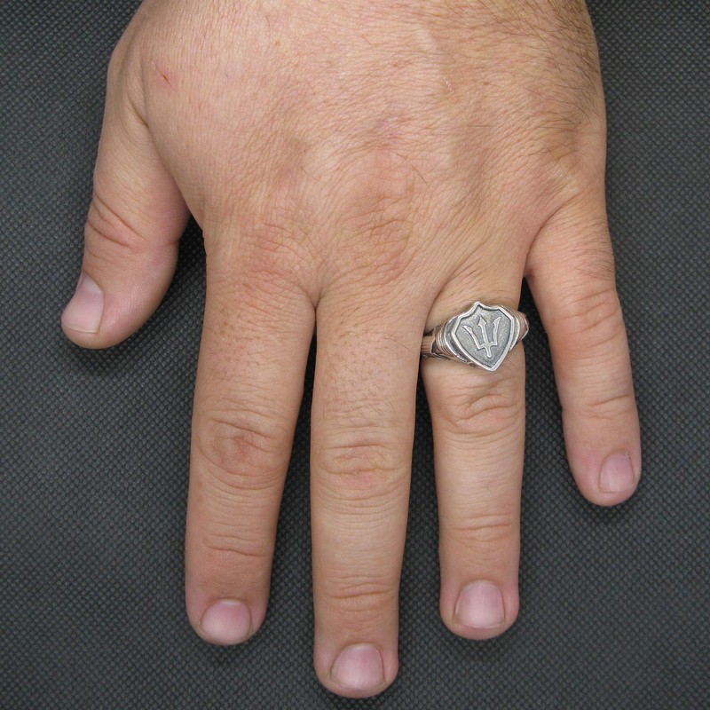 Sterling Silver Ring Poseidon Symbol Trident Solid Genuine Hallmarked 925