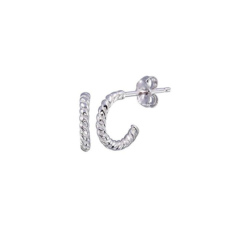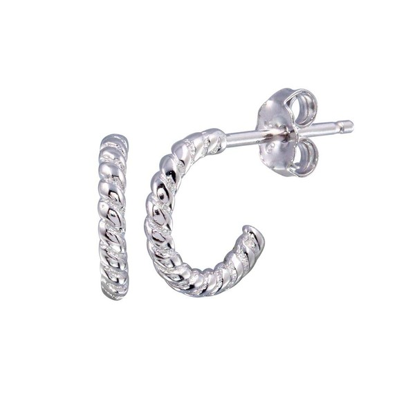 Sterling Silver Rope Design Semi Hoop Stud Earrings