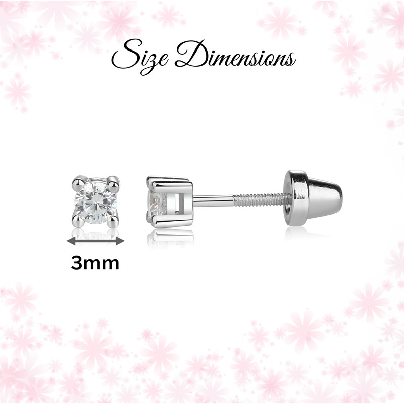 - PREMIUM QUALITY – Earrings are designed using .925 sterling silver and feature a clear 3mm cubic zirconia. They are hypoallergenic and nickel free so they will not irritate sensitive ears. These make a timeless keepsake she will treasure forever.