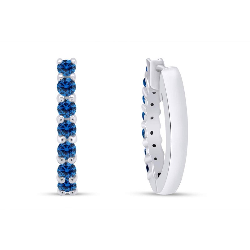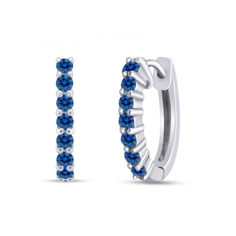 Sterling Silver Round Cut Simulated Blue Topaz Hoop Earrings (0.64" Diameter,...