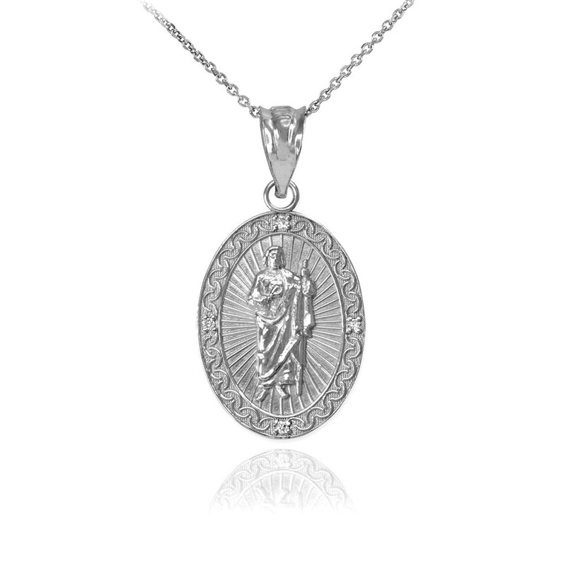 Sterling Silver Saint Jude Thaddeus CZ Oval Medal Pendant Necklace (Small), 18"