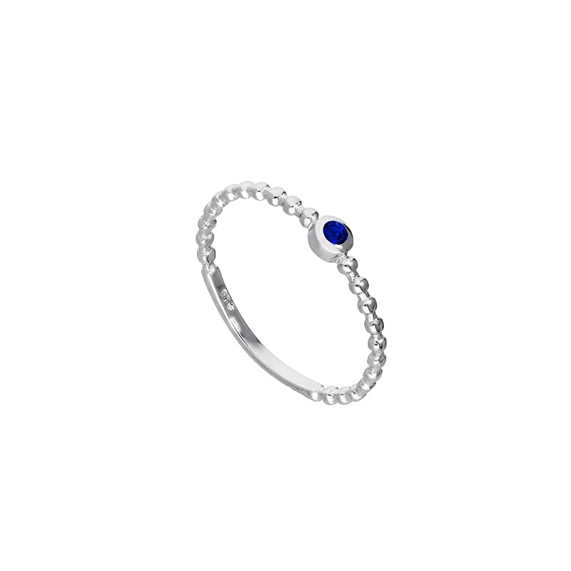 Sterling Silver & Sapphire CZ Crystal September Birthstone Beaded Band Ring Size L (Available I - U)