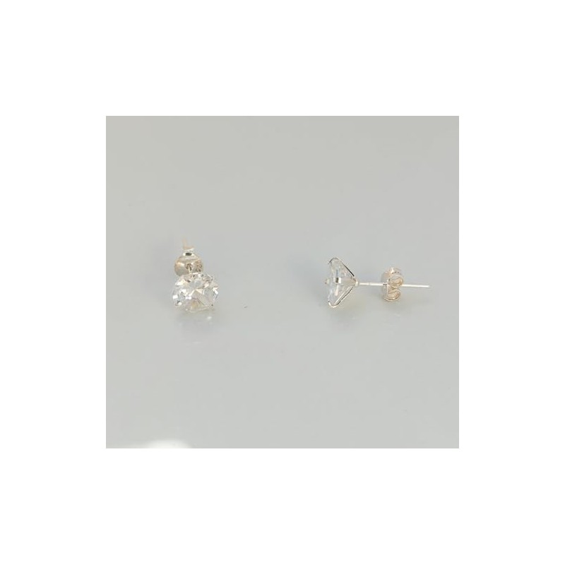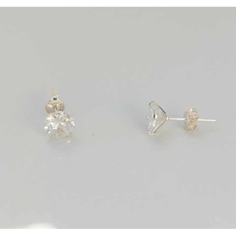Sterling Silver Solitaire Zircon Stud Earrings Square or Round Shaped (Round 7mm)