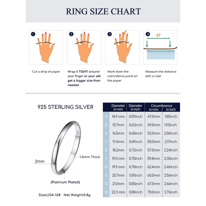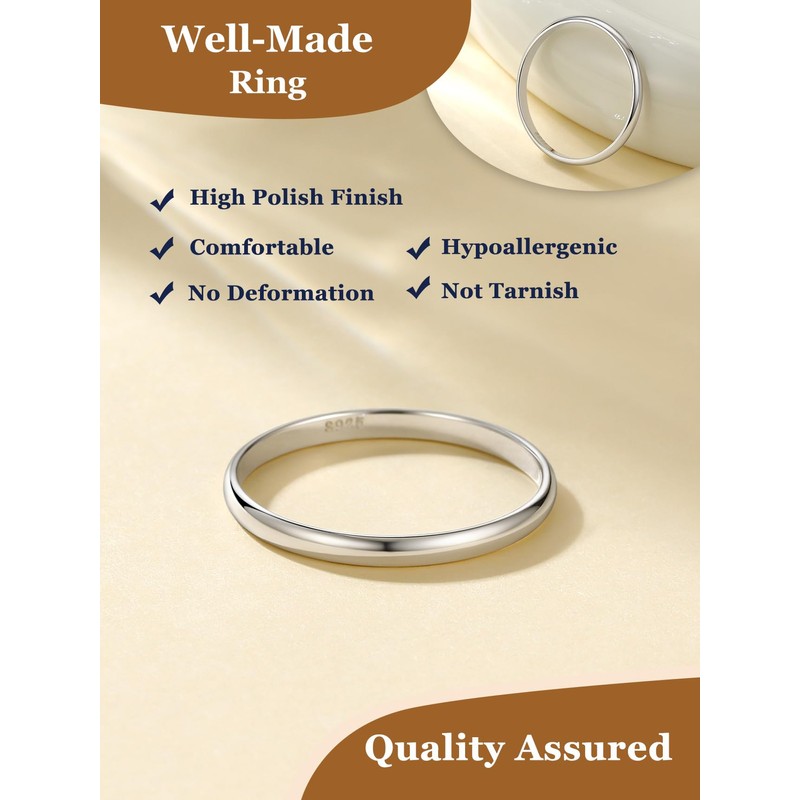 - 🎉 HYPOALLERGENIC 🎉 -- 925 sterling silver band ring with high polish. Safe for sensitive skin,highly resistant to tarnish,rust and corrosion and waterproof.