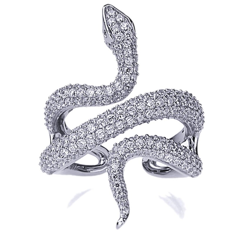 Sterling Silver Statement Ring Healing Protection Snake CZ Pave Adjustable Open Ring 34mm, 7