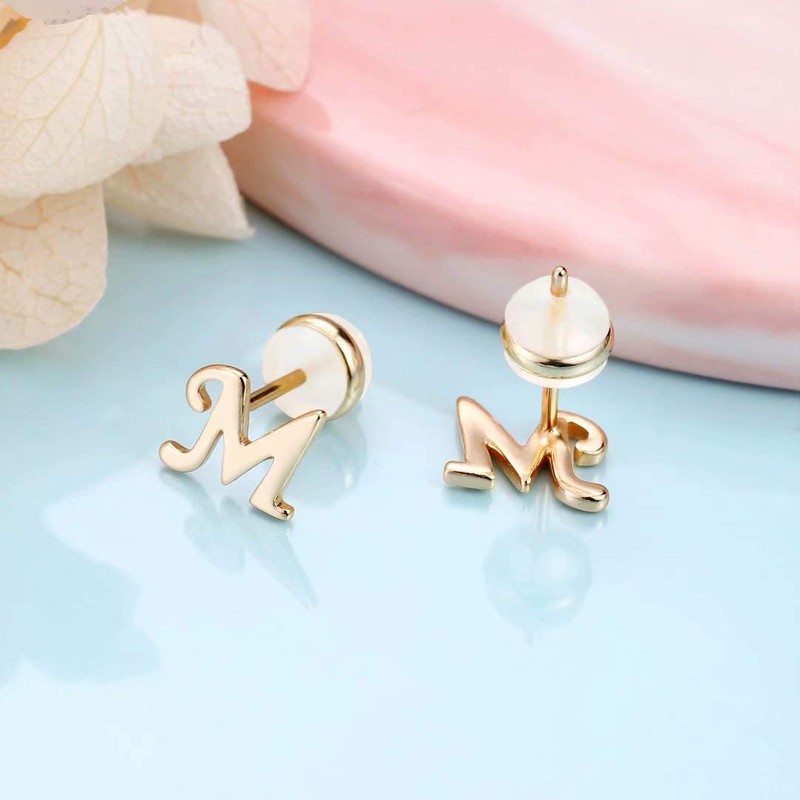Package: 1 Pair of initial stud earrings comes in gift box.