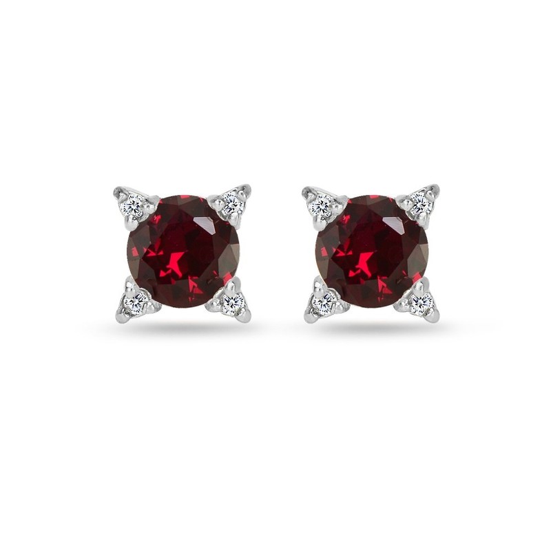 Classic and trendy, these beautiful earrings for womenfeature 6mm round-cut gemstones set in a white topaz studded solitaire design. These stud earrings are crafted of fine sterling silver and are nickel & tarnish free. They secure by post with friction backs.
