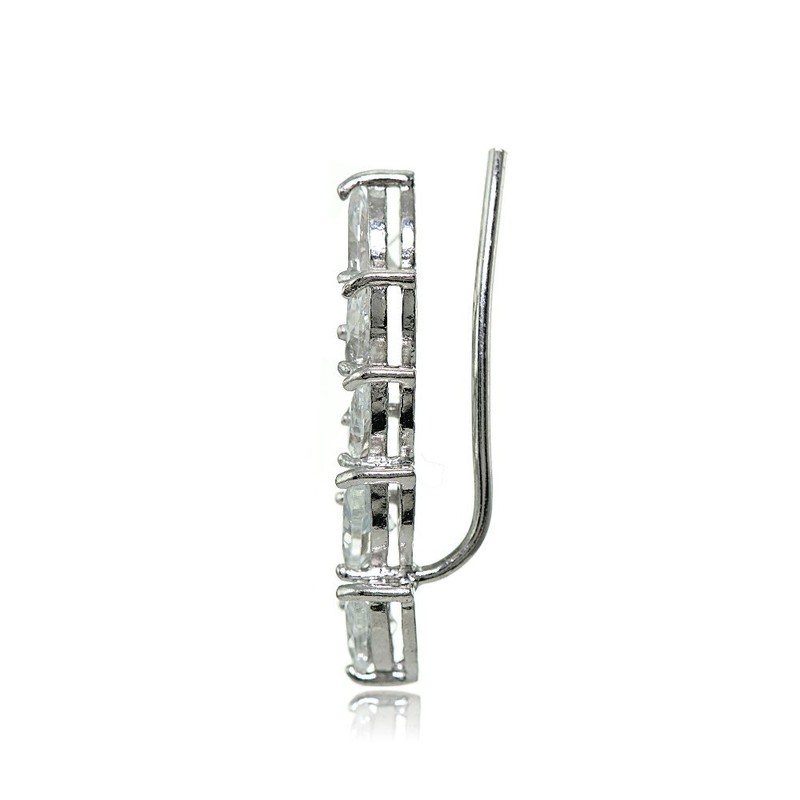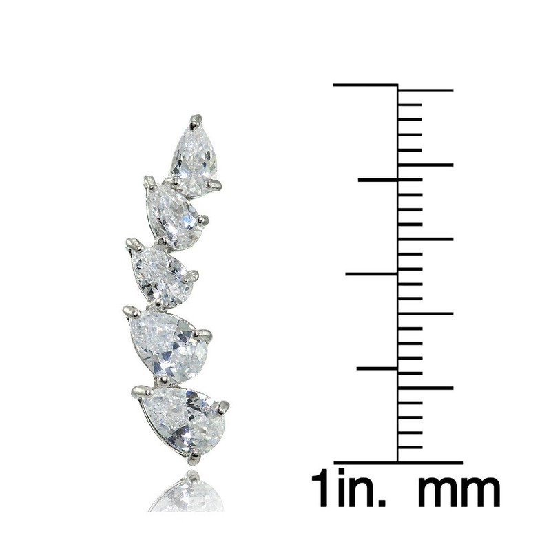- Featuring trendy climber crawler curve earrings with prong set pear shape cubic zirconias.
