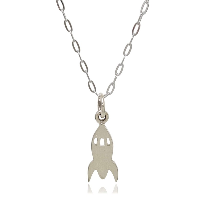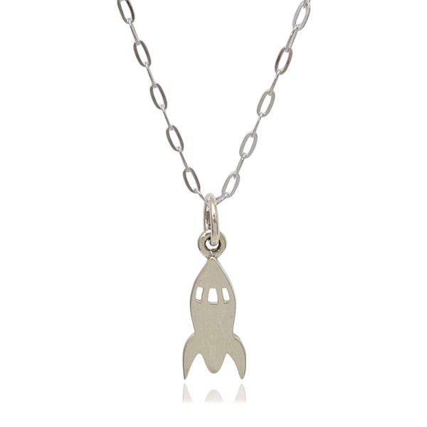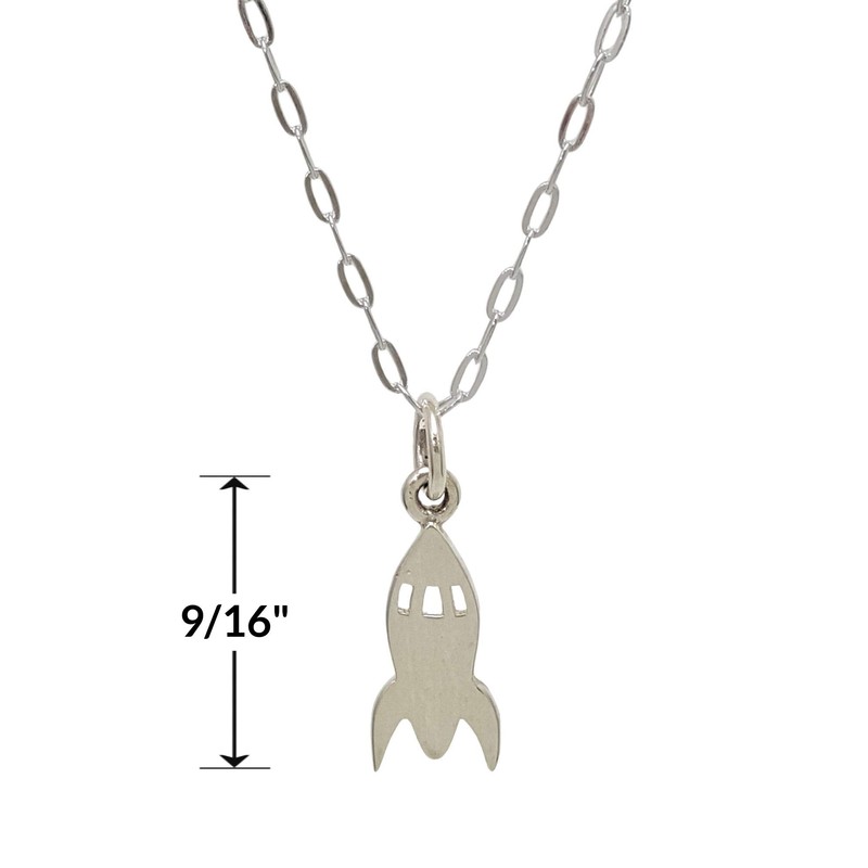 Sterling Silver Tiny Rocket Space Ship Flat Charm Necklace, 18"