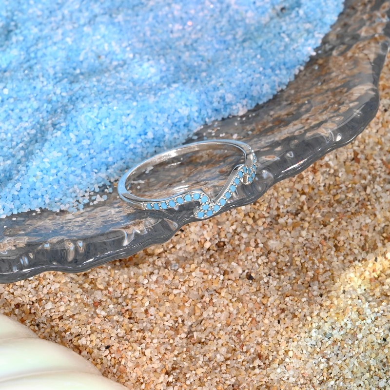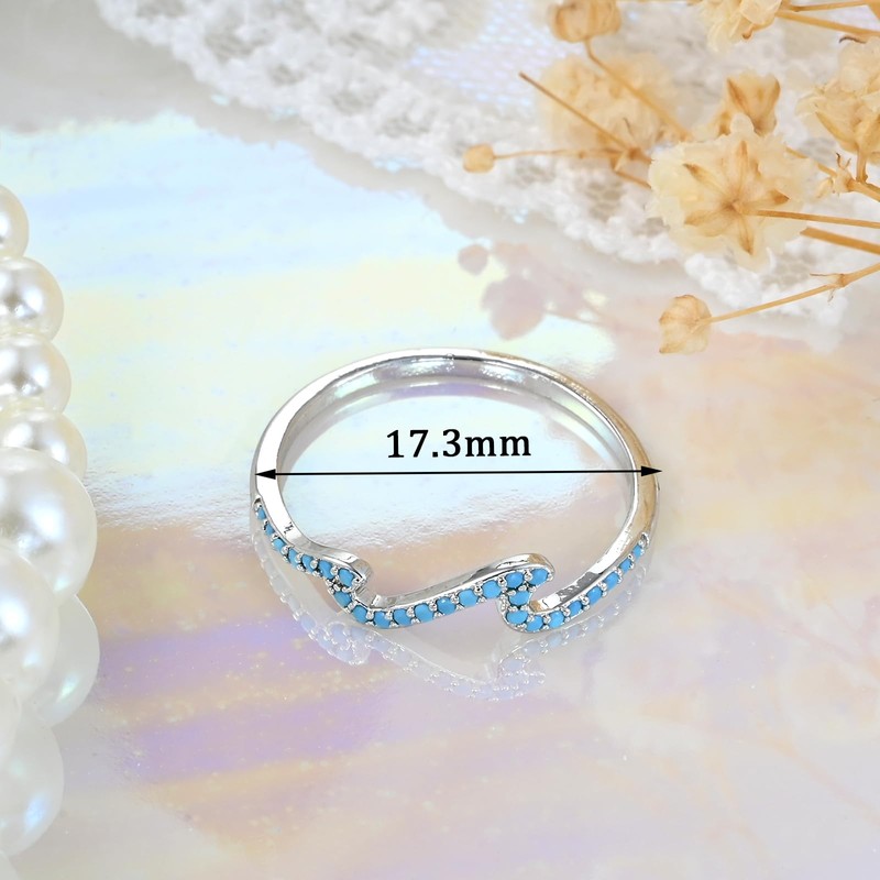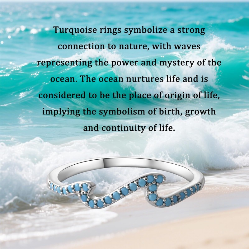 - Unique Design: These sterling silver rings feature a stunning wave shaped design adorned with turquoise gemstones. The waves symbolize the power and mystery of the ocean, while turquoise represents a strong connection to nature, making it a meaningful and eye catching piece.