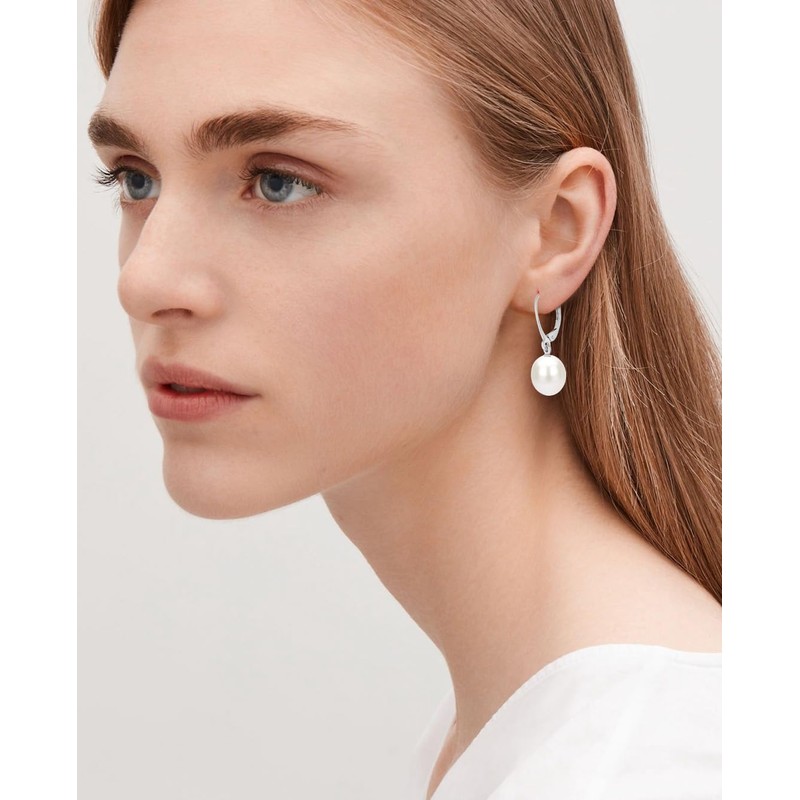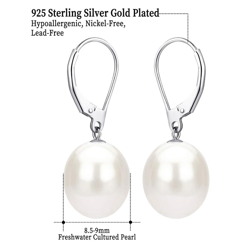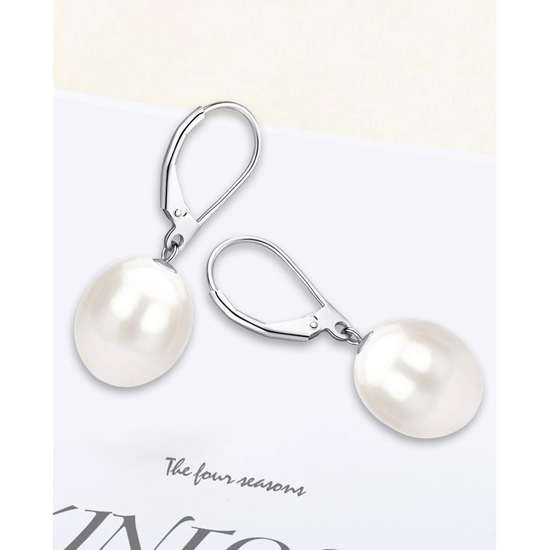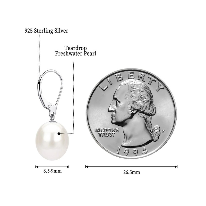 Sterling Silver White Teardrop Freshwater Cultured Pearl Leverback Dangle Earrings