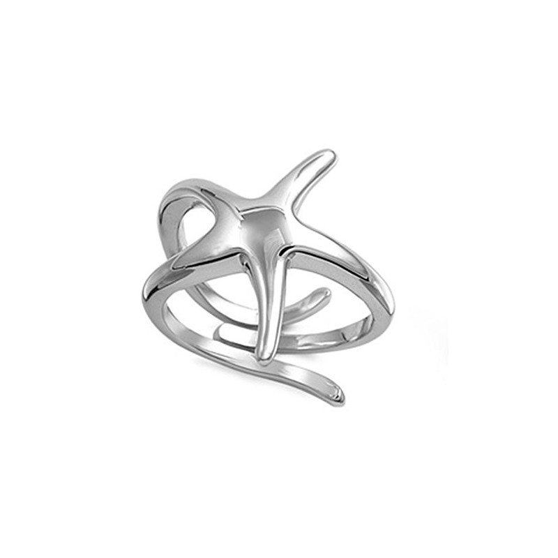 Sterling Silver Women's Unique Starfish Ring Polished 925 Band 21mm Size 6
