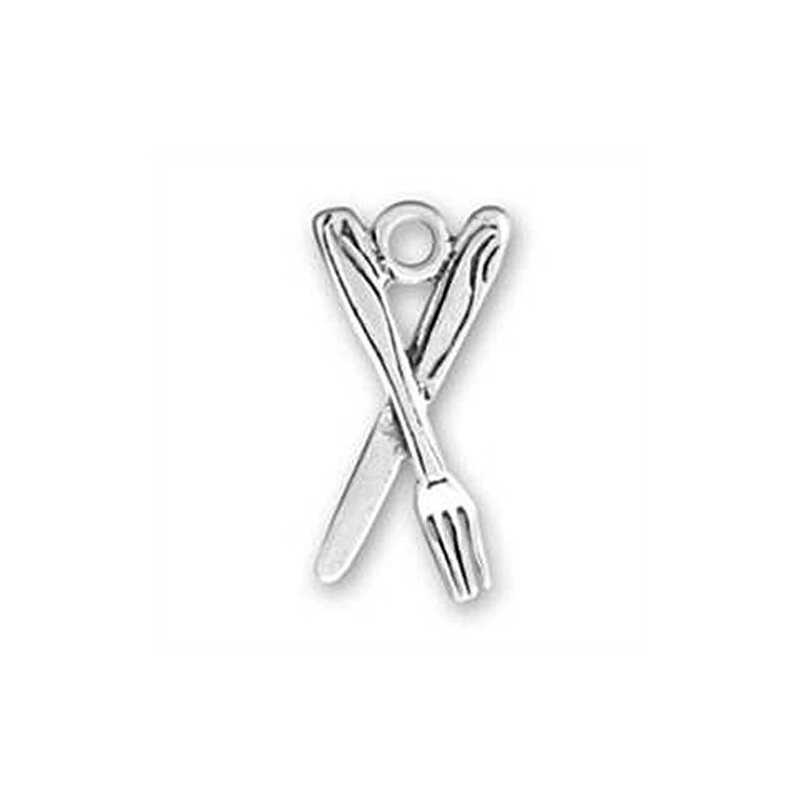 Sterling Silver Womens 30" 1mm 3D Silverware Crossed Fork And Knife Utensil Set Pendant Necklace