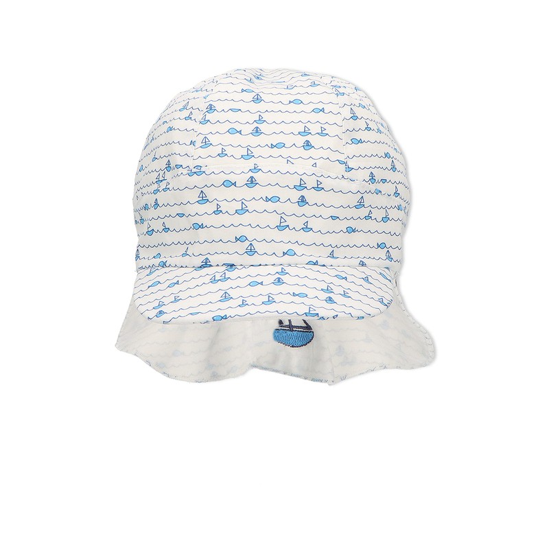 - Practical details: baby hat with neck protection and boat motifs, ties for a secure hold, optimal fit