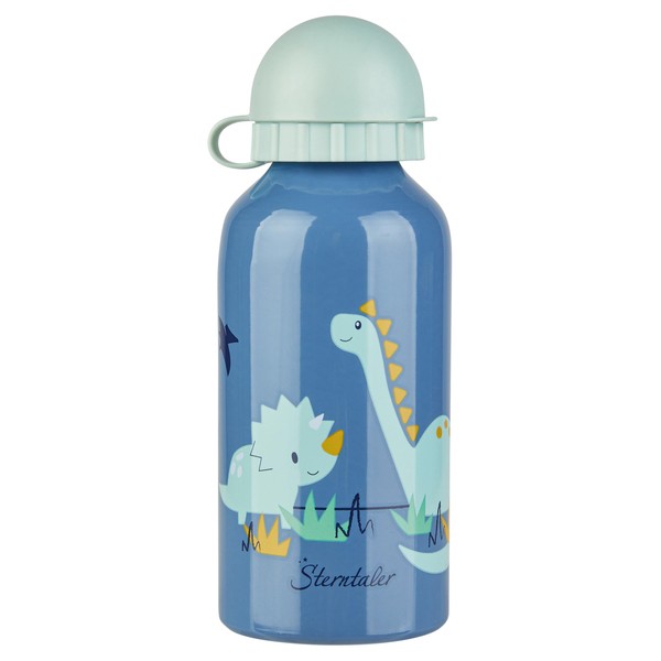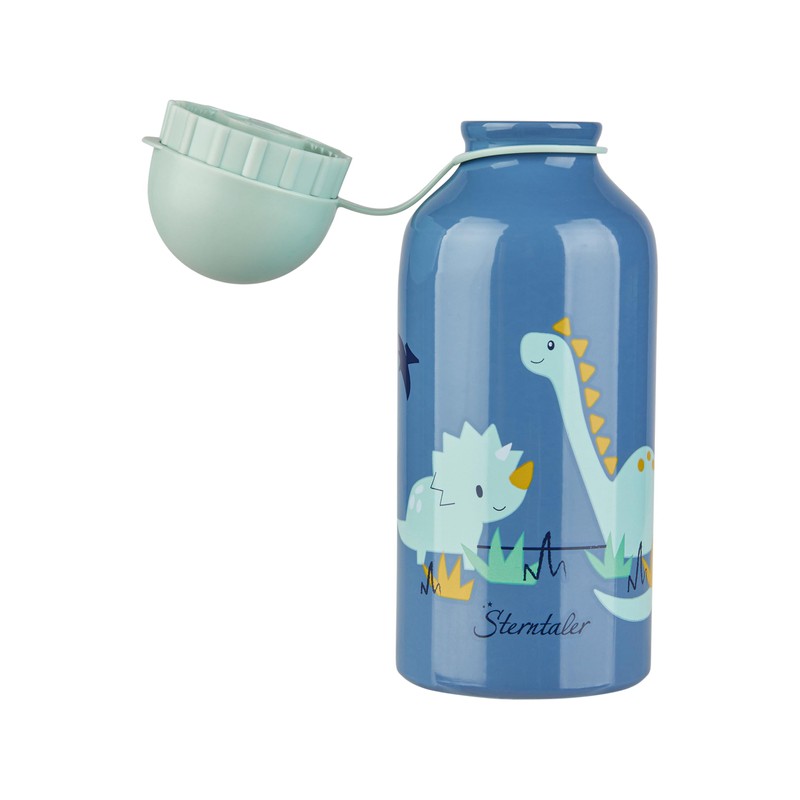 Sterntaler Dino Rexi Children's Drinking Bottle Made of Aluminium with Cap and Safety Cap - Nursery Drinking Bottle with Dinosaur Motif - for Home and Travel, Medium Blue