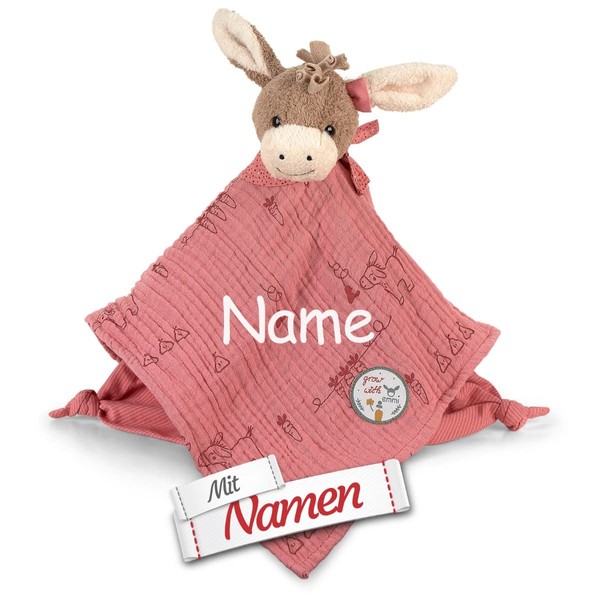 Sterntaler Donkey Emmily Cuddly Blanket with Embroidered Name, Muslin Cuddle ...