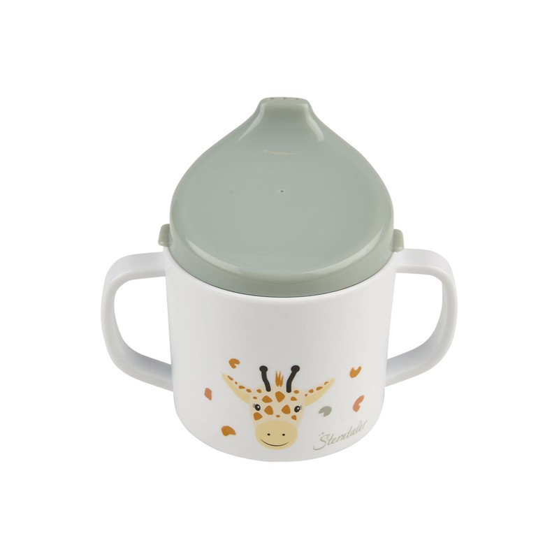 Sterntaler Giraffe & Lion Learning Cup - With Removable Drinking Attachment & Non-Slip Base - 2 Handles for Secure Hold - Durable Food Grade Material - Pale Green
