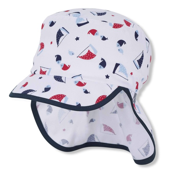 - Box contents: 1 Sterntaler boys' peaked cap with neck protection, age: 9-12 months, size: 47, colour: white, item number: 1612140