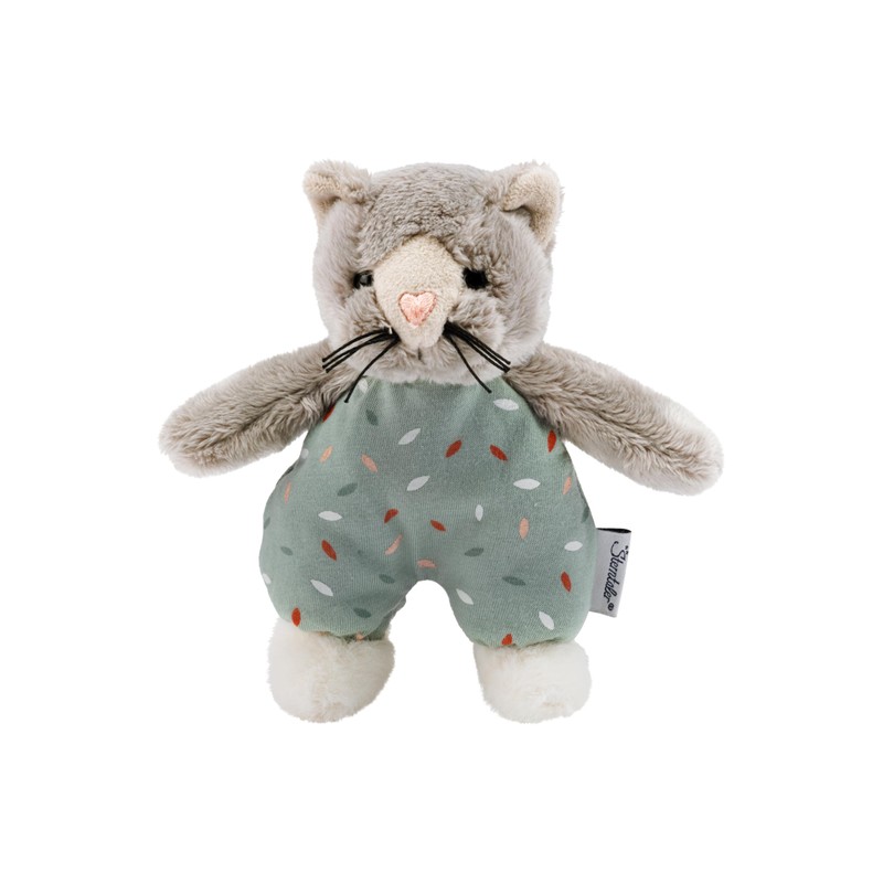 Sterntaler Lilly Mini Cuddly Toy Cat - Plush Toy Made of Soft Fleece - Children and Baby Toy Filled with Polyester Wadding - Faithful Companion with Rattle for Discovering, Cuddling & Playing, Grey