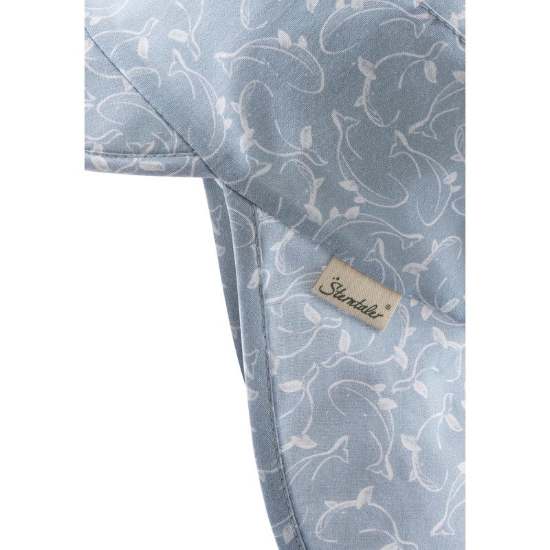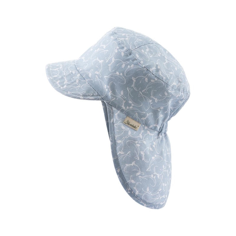 - Peaked cap with neck protection made of cotton printed with whales