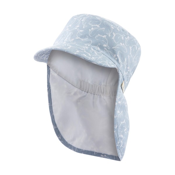 Sterntaler Peaked Cap Neck Whales – Boys Hat with Neck Protection – UV Protection 50+ Sun Hat – Summer Hat Made of Cotton – Baby and Children's Headgear – Batiste Lining (Organic), Sky, 53