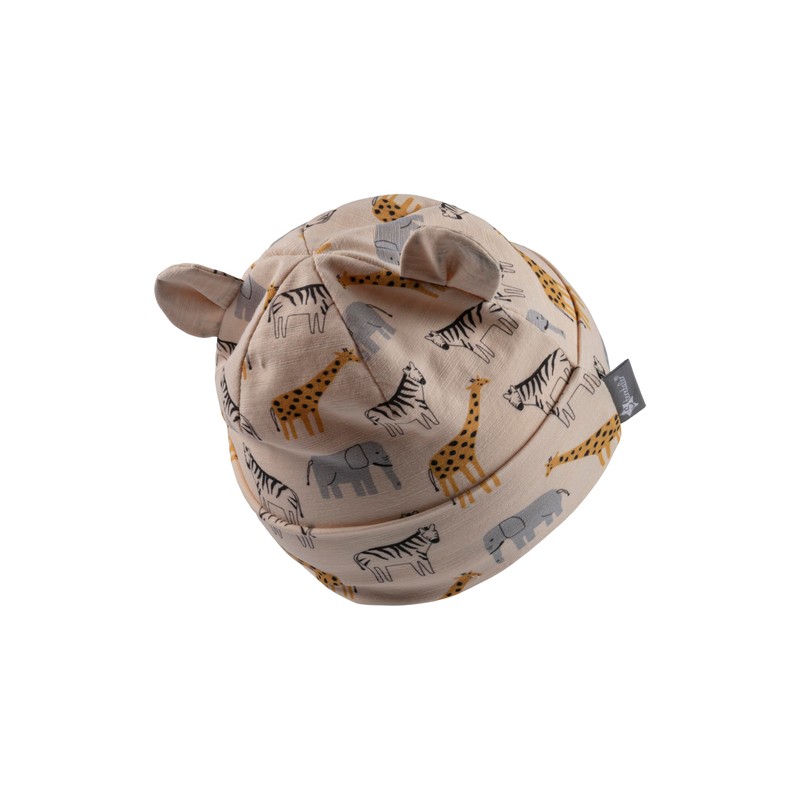 Sterntaler Safaritiere Beanie - Baby Hat with UV Protection 30, with Safari Animals - Lightweight Hat with Envelope and Ears for Babies - Beanie Protects the Head from the Sun, beige
