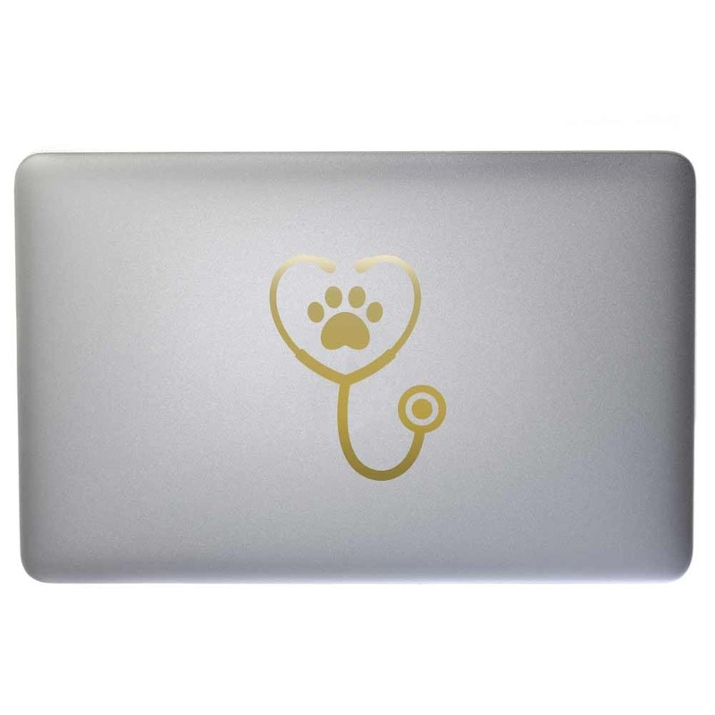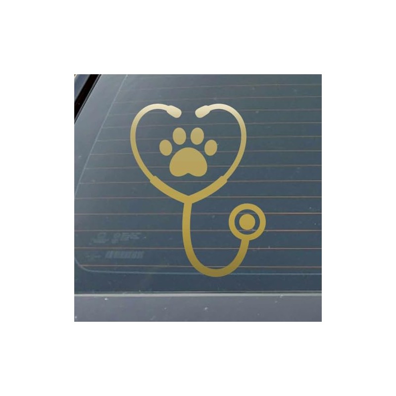 Stethoscope with Paw Print 9 inch Gold Indoor Outdoor Vinyl Decal