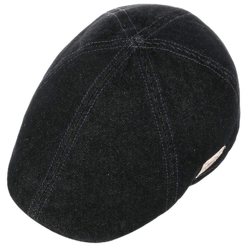 Stetson Texas Robust Denim Flat Cap - Plain Cotton Hat - Flat Cap in Denim Look - Men - Autumn/Winter, black