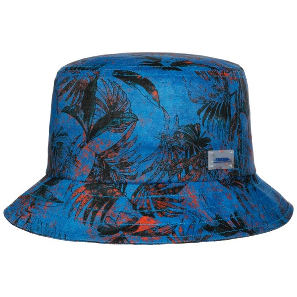 Stetson Vilco Bucket Linen Hat, Linen Hat, Summer Hat with Floral Design, Made in the EU, Men and Women, Spring/Summer, blue, S