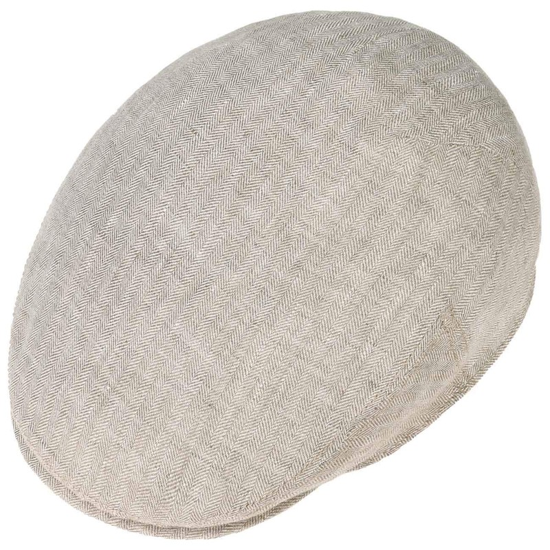Stetson Woodfield Linen Flat Cap - Men's Linen Hat - Peaked Cap Made of Linen with UV Protection (+40) - Summer Cap Herringbone - Flat Cap Spring/Summer - Men's Hat, light beige, 57