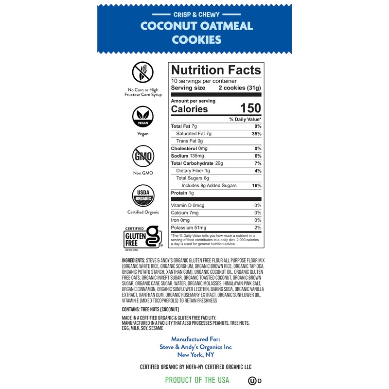 - Product of the USA, with Certifications You Can Trust: All Steve & Andy's cookies are certified USDA organic, gluten-free, and GMO-free, while also meeting the highest kosher standards for exceptional quality and dietary compliance.