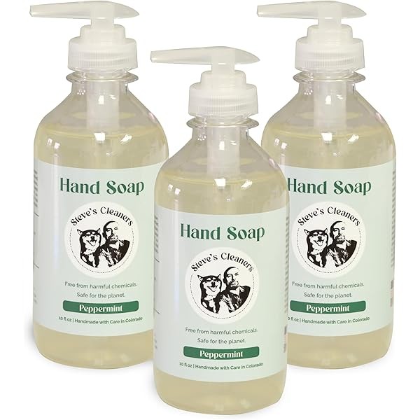 Steve's Cleaners Peppermint Hand Soap | Plant-Based & Paraben-Free Cleanser (Pack of 3)
