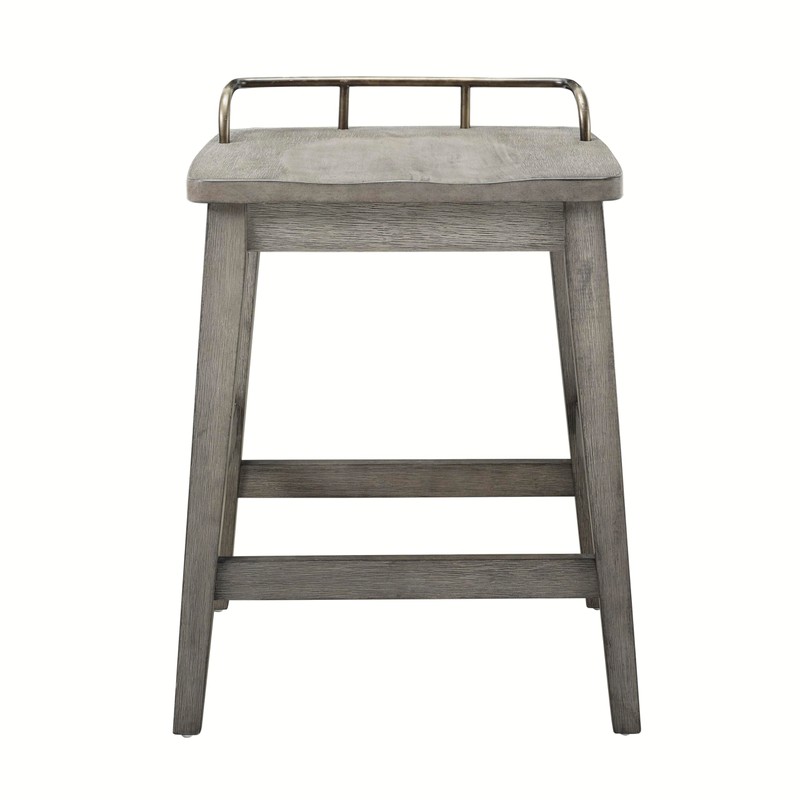 - Styling details include a rustic, casual design with galley rail on back, an accent that is repeated throughout the Ryan collection of dining and counter height items