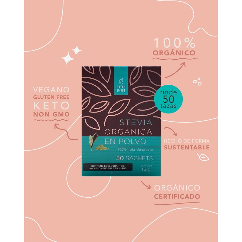 Stevia Orgánica en Sobres, 50 Sobres, 15g, Mayan Sweet