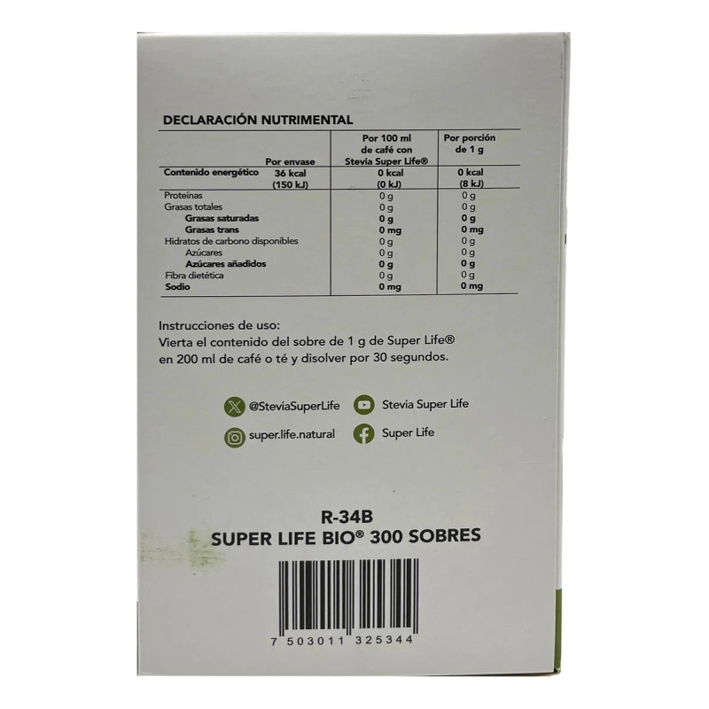 Stevia Super Life 300 Sobres Sin Azúcar Sabor Mejorado