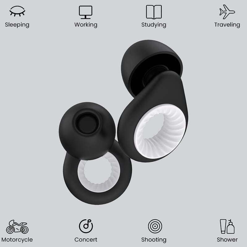 - STYLISH COMFORT - Earplugs are ergonomically designed, Even if you lie on your side or turn over, The sleeping ear plugs not easy to slip off while effectively reducing the impact of sound waves on the eardrum. It look like a fashionable accessory while protecting your hearing.