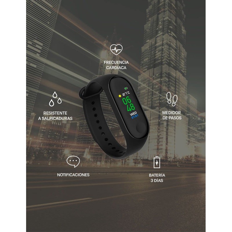 STF Banda Inteligente Negra Kronos Lite Compatible con Android iOS, Resistente A Salpicaduras, Medidor De Pasos Y Frecuencia Cardiaca, Notificaciones | Smartband