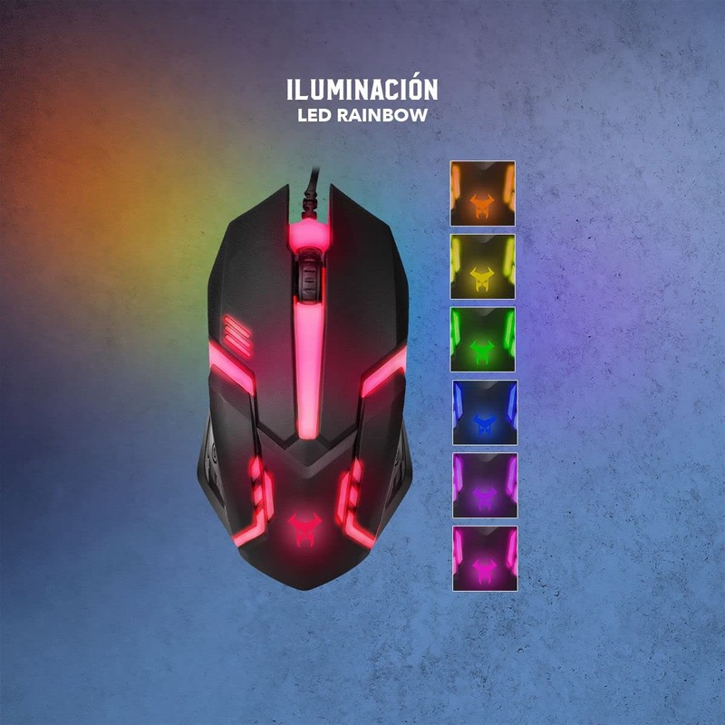 - BOTONES PARA POTENCIAR TU HABILIDAD: tiene 3 botones programables e iluminación LED rainbow que envuelven al mouse para darle una estética digna de un gamer pro