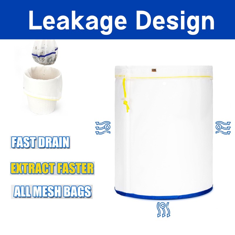 - Full mesh design: the bubble bag is equipped with a practical full mesh design that allows liquids to quickly pass through the sides and bottom. This significantly speeds up the entire filtering process. Perfect for Bubble Bags, Ice-O-Lator and other applications