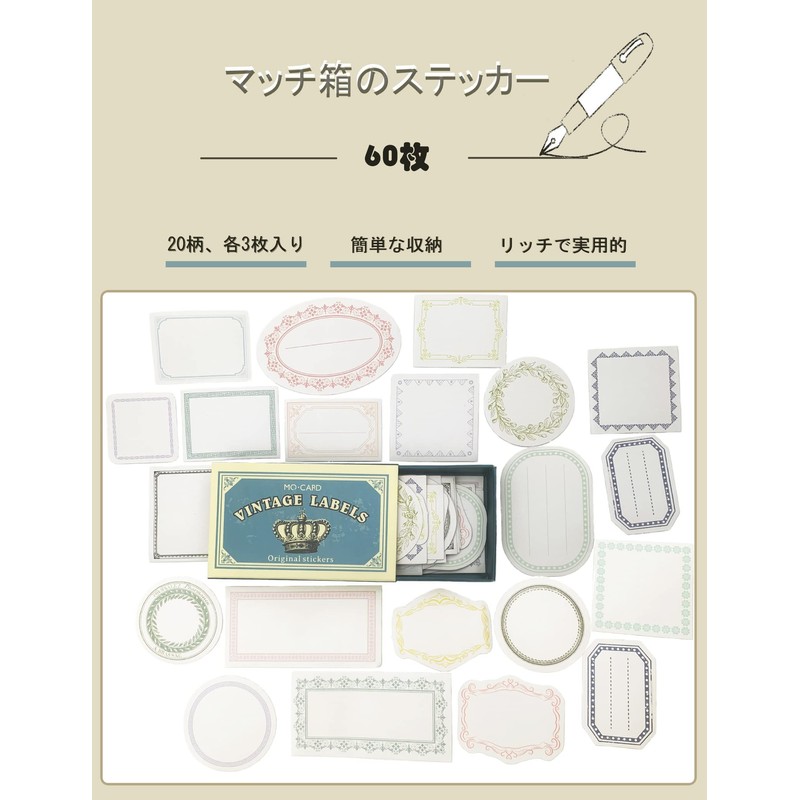 Sticker Book, Stylish, Flake Seal, Collage, Material Design, Paper, Labels, 60 Pieces, Retro Paper Material, Name Stickers, Mini Memo, Deco, Memo Pad, Notebook, Letter, Schedule, Stationery Paper -